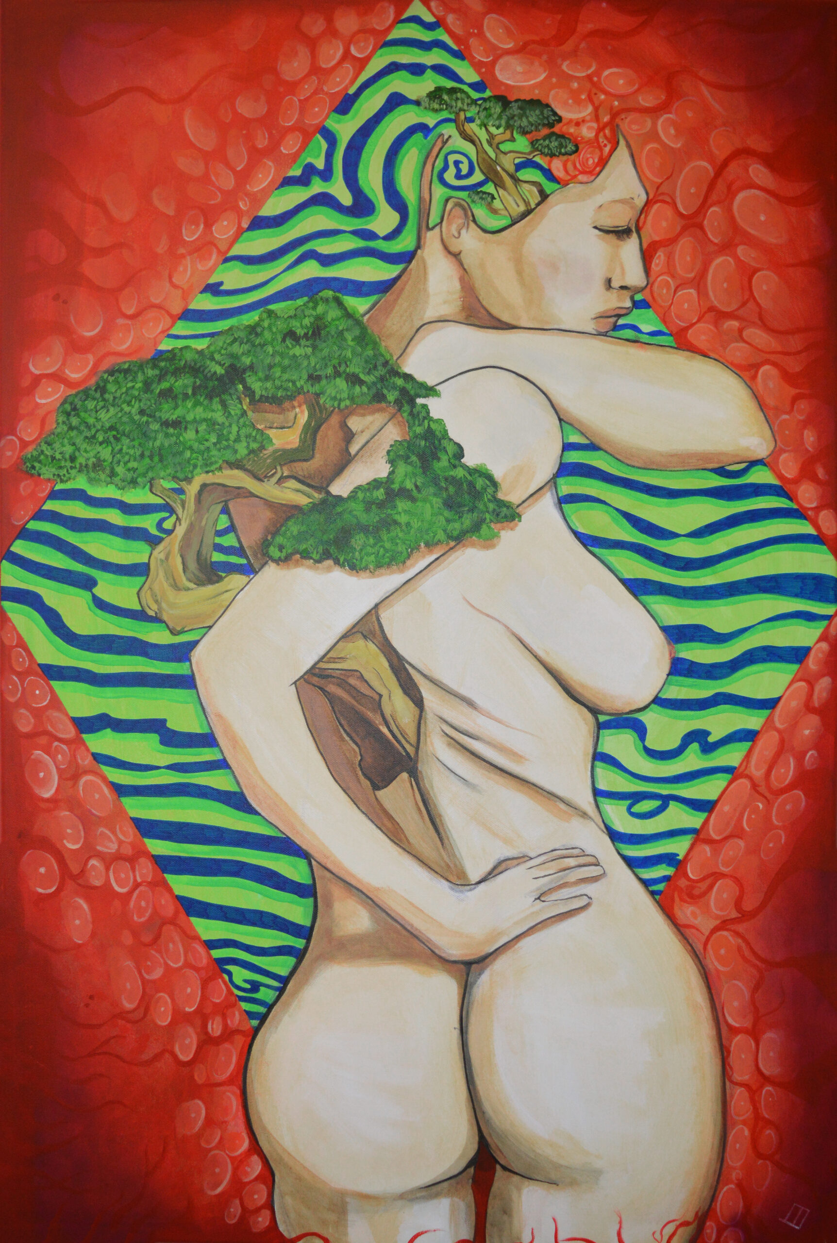 These five works form a loose sequence of metamorphosis—an odyssey from our earliest union in the womb, through the forging of self-awareness, into moments of solitude and longing, then onward to a rooted, symbiotic relationship with the natural world, and finally the emergence of a cultural or mythic persona.