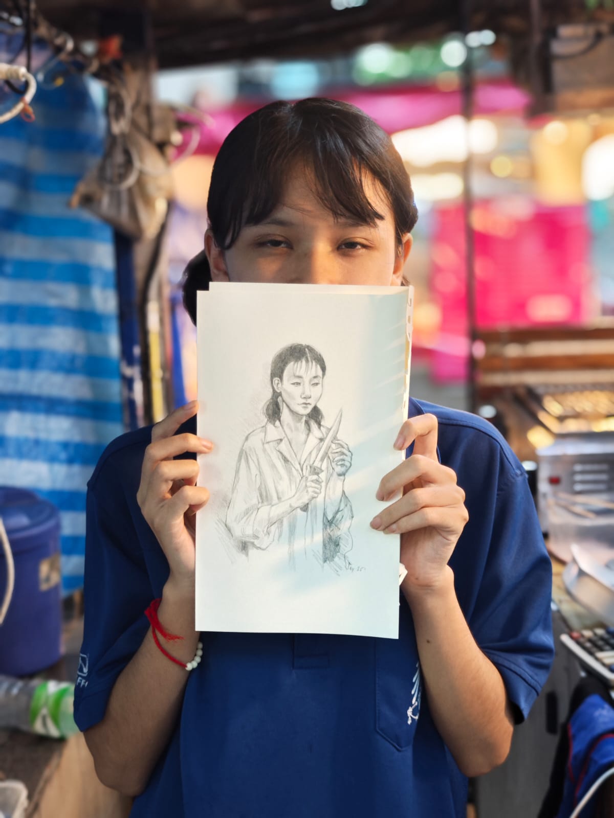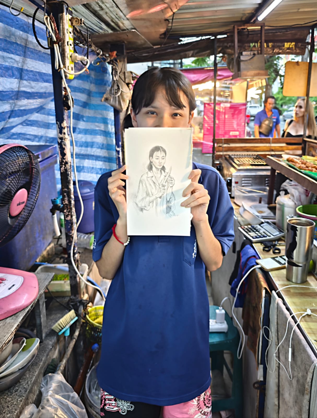 A series of stolen moments, from around Bangkok, quietly capturing Street Sellers in their everyday environments, making art from the mundane, and presenting them with a memento from their hard work.